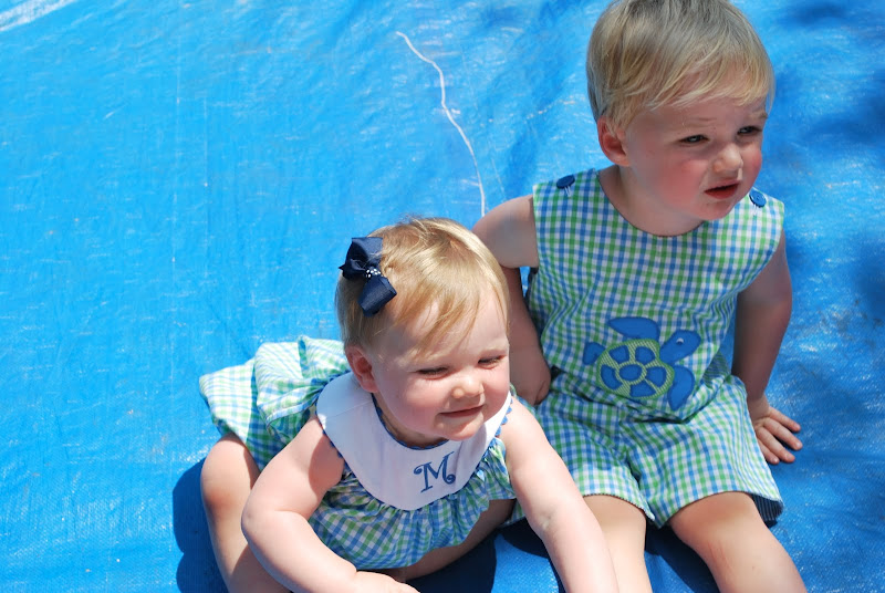 We have had a busy busy month! We went to Mount Airy for a week. We had so much fun hanging out with Pop, Bab's, Aunt Liz and Martin. The kids had a blast playing with all the new toys they had waiting for them in Mt Airy. It was like Christmas! We also went to Winston and found a great rental house for next year. We are very excited about our move, but sad to leave all of our friends and family in Wilmington!! We spent Mothers Day in Wilmington and has such a special weekend. Borden and the kids let mommy sleep in and brought me strawberry pancakes in bed. I have the best hubby in the world!!! I feel SO blessed to be Borden & Maggie's mommy and to have such a sweet husband! The last few weeks have been filled with birthday parties, beach & pool days and we were even treated to a day on the boat! I LOVE Spring! I can't believe our little Maggie is about to turn 1!! She took her first steps this week, which was a bittersweet moment for me. I am so excited about her growing up, but a part of me is holding on to everything "baby" I can. Where has the time gone?!